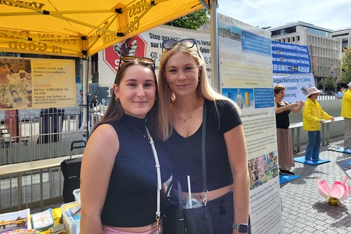 They asked us about Falun Dafa – what is it? How can anyone object to its teachings and treat its practitioners this way? Practitioners guided them to our Falun Dafa booth next door, introduced them to Zhuan Falun and showed them the graceful exercises. Many tried them and commented on the deep sense of tranquility around them even though the music of the festival made it difficult to talk.