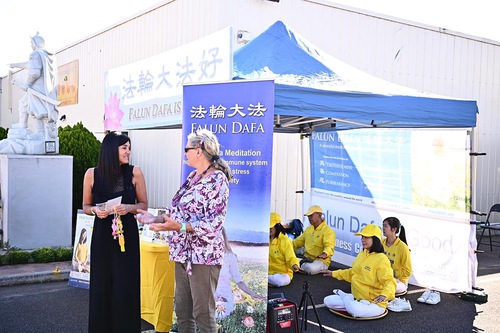 One woman said that she was looking for an outdoor activity that she could do regularly and decided that Falun Dafa was for her. Others saw practitioners doing the standing exercises and sitting meditation, and stopped to read the information poster and take flyers. Some inquired about how they could learn the exercises.