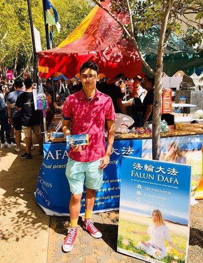 Mr. Zhuan from Hong Kong passed by the event venue and expressed an interest in Falun Gong. He learned about the practice from a practitioner and said, “I think Falun Gong is very good! I will come with my classmates to learn it.”