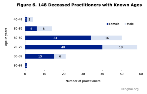 The 164 deceased practitioners, aged between 41 and 91 at the time of their passing, came from all walks of life, and included automobile company workers, pharmaceutical company directors, teachers, lawyers, farmers, store owners, accountants, and former government officials.