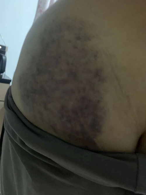 The police sat Ms. Zhao on a bench with her legs tied to the bench. Four officers shocked her on the palms, chest, nipples, and legs with electric batons. The front of her body had numerous burn marks that turned black.