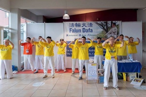 The practitioners introduced Falun Dafa and demonstrated the exercises, and explained how this cultivation practice, based on the principles of Truthfulness, Compassion, and Forbearance, has benefited countless people worldwide.