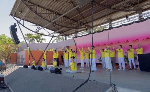 Practitioners demonstrated the Falun Dafa exercises and introduced the principles of Truthfulness, Compassion, and Forbearance.
