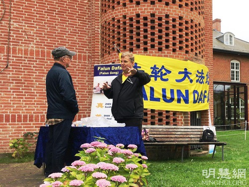 Practitioners demonstrated the Falun Dafa exercises and introduced the principles of Truthfulness, Compassion, and Forbearance.