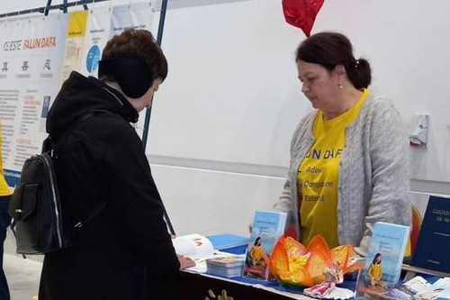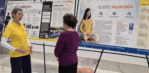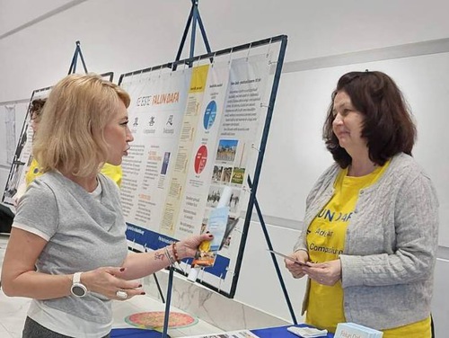 Maria and Liana were delighted to learn about Falun Dafa, took the informational materials, and obtained the contact information of the practitioner in Timișoara. Liana also purchased the book Falun Gong. The women said they wanted to host a presentation of the exercises at their association, where many people gather.
