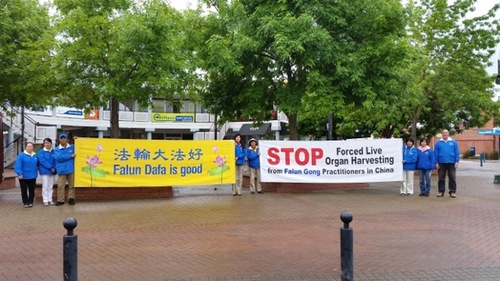 When a photographer wanted to know more about Falun Dafa, a practitioner explained that it is a spiritual practice based on Truthfulness, Compassion, and Forbearance. The photographer said they appreciated these principles very much and asked for a flyer: “I will read this carefully.”
