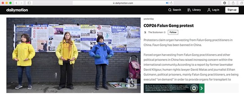 (Minghui.org) Since the start of the 26th United Nations Climate Change conference (COP26) held in Glasgow, Scotland, Falun Gong practitioners have been going to the conference venue and other large scale events to raise awareness of the ongoing persecution of their faith in China.