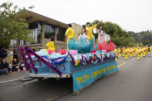 (Minghui.org) Practitioners were invited to participate in the Heart of Mukilteo Parade, which is part of the Mukilteo Lighthouse Festival, Mukilteo a suburb of Seattle, on September 6, 2025. They won the “Best Performance” award for their entry.