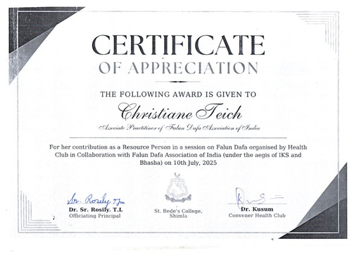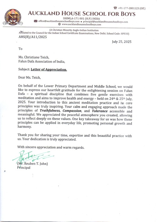 He wrote: “On behalf of my school, including our students, staff, and faculty, I extend our deepest gratitude for your inspiring and transformative Falun Gong sessions conducted for all the sections of our school.