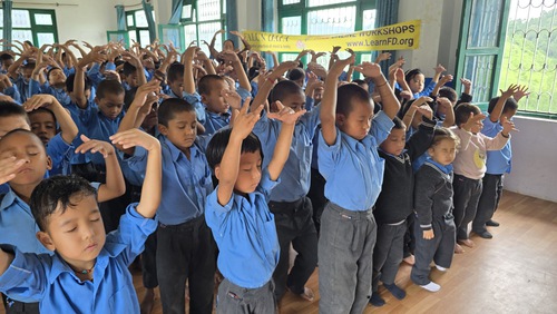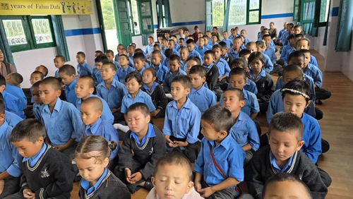 The students who attended came from a variety of backgrounds, including girls’ schools and colleges, children’s homes, special education schools, and a Tibetan school. They expressed their appreciation for the exercises and Falun Dafa’s values of Truthfulness, Compassion, and Forbearance. The practitioner also received help from locals who are supportive of the effort to spread Falun Dafa.