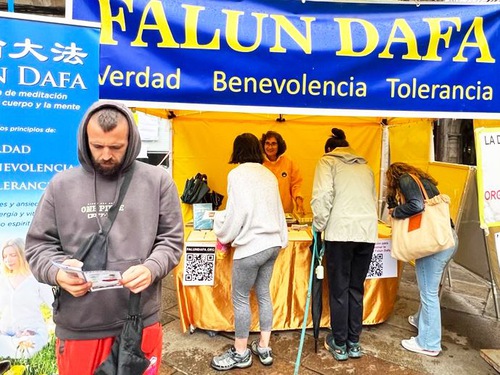 Diego signed the petition and said he hoped to do his part to stop the persecution. He asked to be shown how to do the exercises. After he did them, he said they were very good. He took some information about Falun Dafa and said he’d contact a local practice site when he returned home.