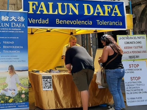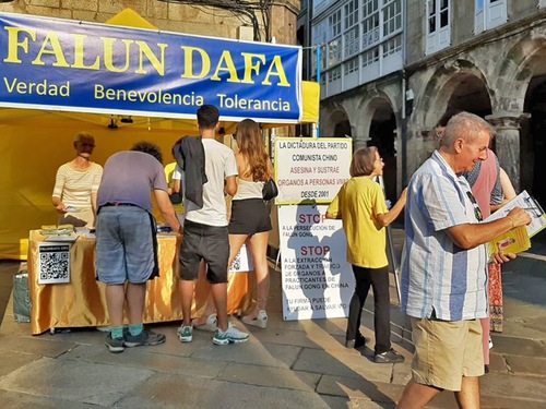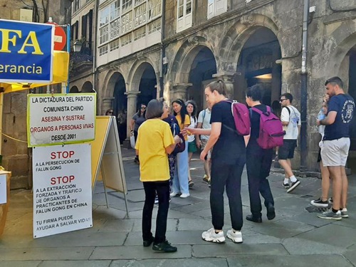 (Minghui.org) Falun Dafa practitioners in Spain held an event in Santiago de Compostela in northwest Spain on August 23 and 29, 2025, to raise awareness of the Chinese Communist Party’s (CCP) persecution in China.