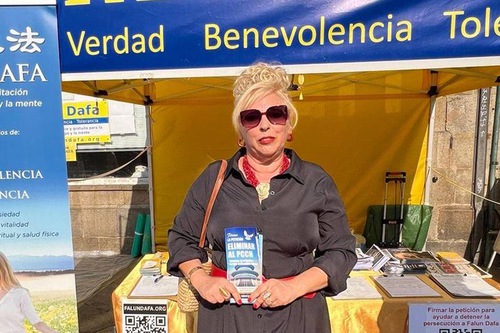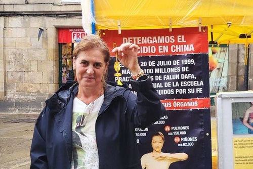 Cristina, who lives in Galicia, told a practitioner that she was very interested in qigong and Tai Chi, “But in the 1990s, no one in Spain taught qigong.” She confirmed with the practitioner that Falun Gong is Falun Dafa. During a trip to China eight years ago, she heard about Falun Gong from a practitioner that the CCP regime doesn’t allow the existence of spiritual faith. So when she saw the pictures on the display boards showing practitioners being brutally persecuted by the CCP, she immediately signed the petition to support their efforts to expose the persecution.