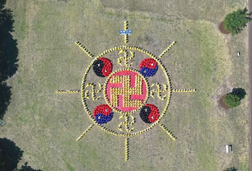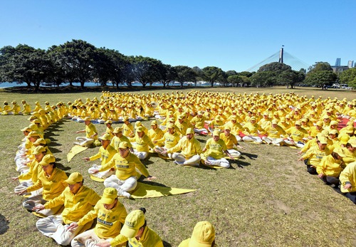 (Minghui.org) Falun Dafa practitioners from Australia and New Zealand did the exercises in Jubilee Park in Sydney on October 11, 2025. They also formed the Falun emblem as part of their efforts to let people know about the spiritual practice. They said they appreciate Master Li, the founder of Falun Dafa (also known as Falun Gong).