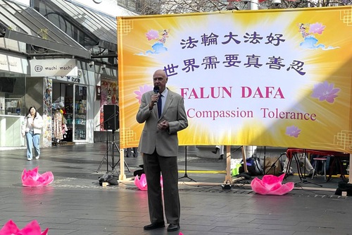 In his speech, John Deller, spokesman for the Australia Falun Dafa Association, welcomed the people in Chatswood to the event and explained it was a day of celebration and commemoration of Falun Dafa, also known as Falun Gong.