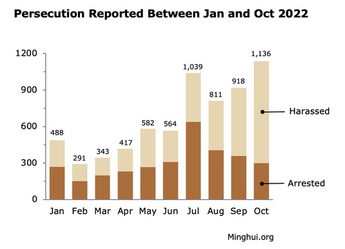 China NewsNovember 27, 2022Reported in September and October 2022: 2,054 Falun Gong Practitioners Arrested or Harassed for Their Faith