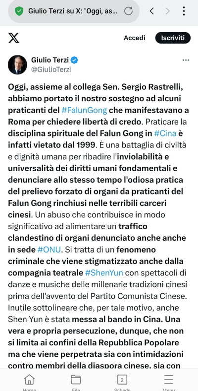World NewsJuly 16, 2025Italy: Elected Officials Support Falun Dafa Practitioners and Condemn the Persecution