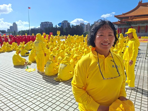 She said she saw a photo of practitioners in Taiwan forming characters, “I always wanted to take part in such a grand event. I am delighted to be here today. I thank everyone for their care and help.”