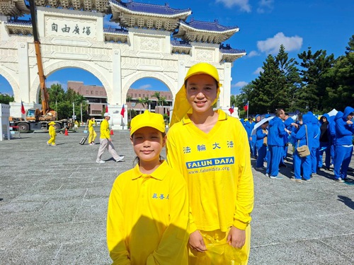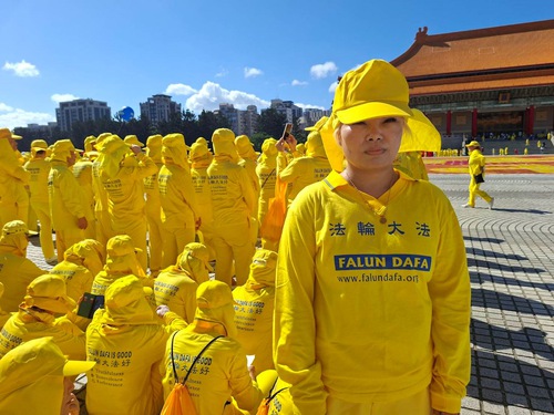 (Minghui.org) Over 5000 Falun Dafa practitioners from various parts of Taiwan, the U.S., Canada, Japan, South Korea, Hong Kong, Australia and Indonesia participated in a character formation at Liberty Square in Taipei on October 18, 2025. They said they learned from and encouraged each other to improve in cultivation.