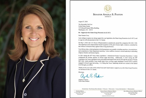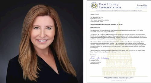 “Advancing this legislation in the Senate is now a vital step toward ensuring that the United States holds perpetrators of human rights abuses accountable and stands firmly against the Chinese Communist Party’s persecution of Falun Gong practitioners,” wrote Terri Leo Wilson, Representative of the 15th District of the Texas House of Representatives.
