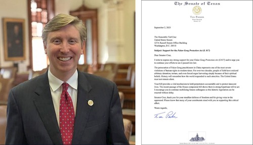 “I am writing to express my support for your legislation, the Falun Gong Protection Act, S.817, and to urge its advancement in the United States Senate. On May 5, 2025, the United States House of Representatives passed the companion bill, House Resolution 1540, by unanimous consent. This bipartisan action demonstrates broad recognition of the grave human rights violations committed by the Chinese Communist Party against Falun Gong practitioners.