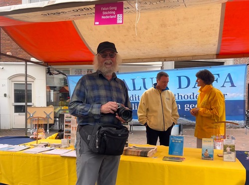 Willem Lagos is a photojournalist for a local magazine. He was drawn to the practitioners’ booth and said, “Yellow is very bright and beautiful!” He also said, “I can feel that you are a group of friendly, passionate, and kind people.” When he heard of the ongoing persecution in China, he said, “This is horrible. It is so terrible of the CCP to do this. We did not know anything about this matter.” He praised practitioners for exposing the CCP’s persecution and said, “What you are doing is very good!”