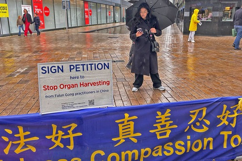 A couple who signed their names on the petition said that they had learned about the persecution of Falun Dafa on Facebook. They were very moved to see practitioners continue to hold their event even in the rain, so they wanted to sign in support.