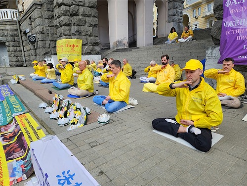 About 30 practitioners attended the activities, most of them were from Kiev. Some temporarily moved to Kiev from other parts of the Ukraine due to the war. They say that practicing Falun Dafa helped them through difficult circumstances, and they want to see the persecution in China end.